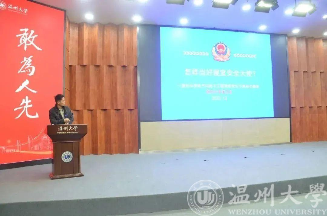 2022年12月2日18点30分,十大买球平台排行榜邀请正规外围买球十大平台保卫处副处长钱合激老师、院学工办主任兼团委书记廖晓安老师、辅导员陈海彤老师、辅导员屠昌浩老师、辅导员余明新老师于岩松堂雁山厅出席买球官网寝室长安全教育暨形势与政策课,参加本次会议的还有各班级班长、团支书、心理委员和全体寝室长。