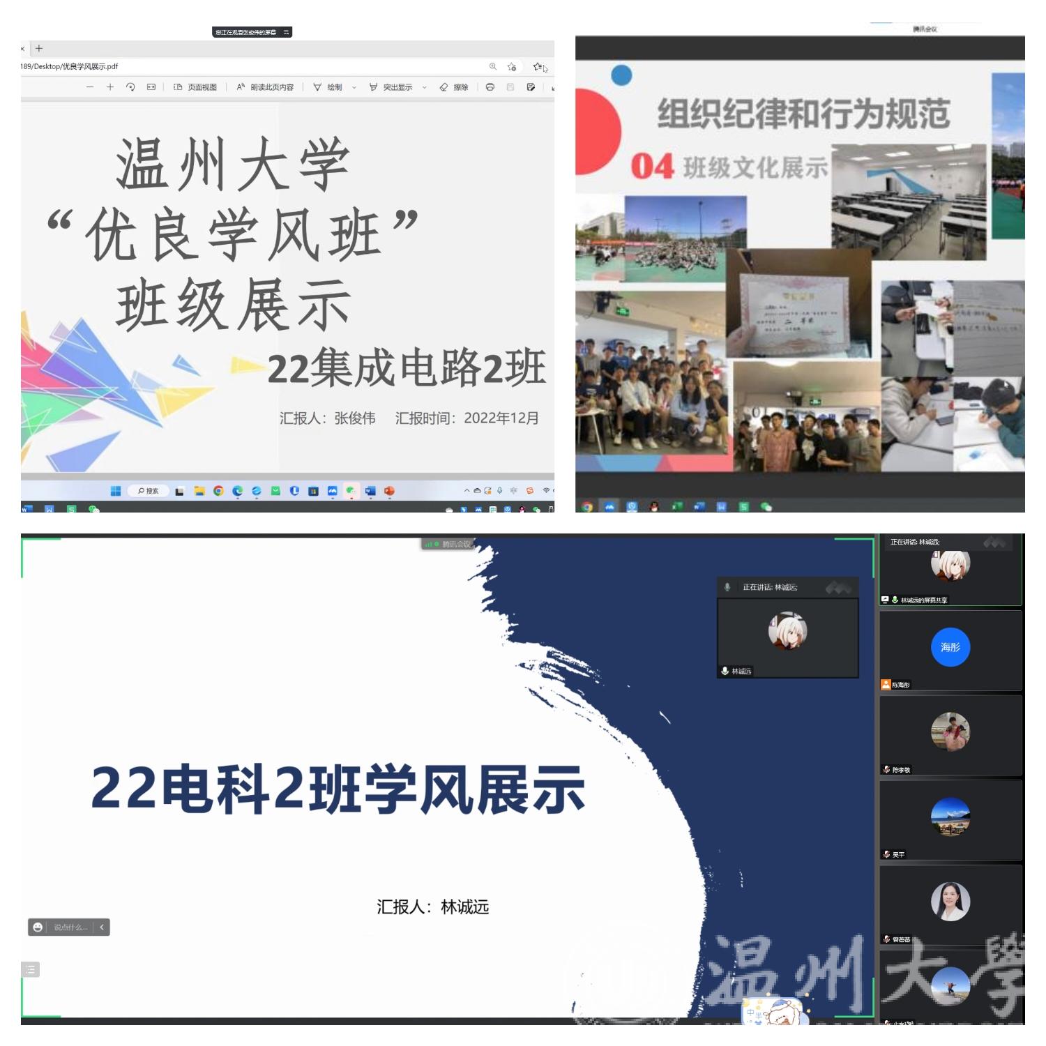 为进一步加强校风学风建设,树立优良学风,加大优秀班级的示范作用,买球官网于2022年12月14日在线上举办2022/2023学年“优良学风班”立项申请评选活动。学院本科生评选委员会委员及申请立项的9个班级出席了本次活动。