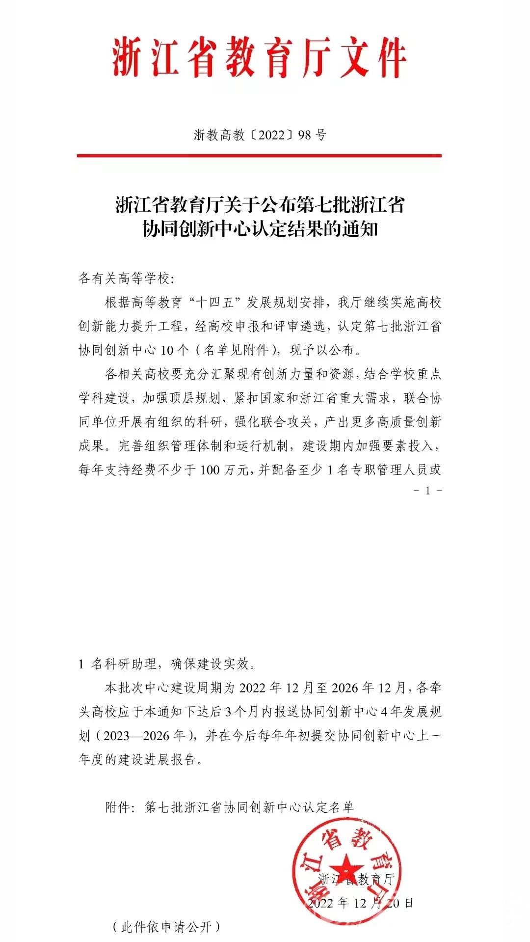 日前,浙江省教育厅公布第七批浙江省协同创新中心认定结果,买球官网舒亮研究员领衔申报的“电气数字化协同创新中心”获省级认定。本批全省共有10所高校的10个协同创新中心获得省级认定。这是我校第四个获得省级认定的协同创新中心。