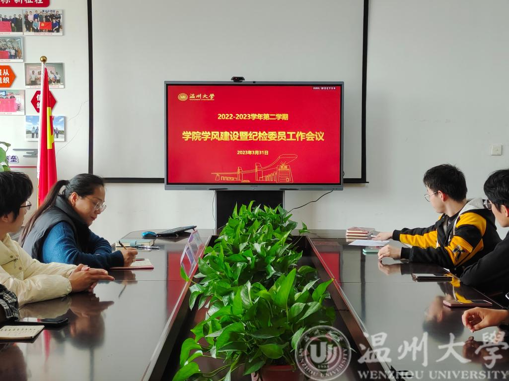 2023年3月31日中午12:30,买球官网于1A-512召开2022-2023学年第二学期学风建设暨纪检工作会议。参与此次会议的有学院党委副书记曾蓓蕾、院学风负责辅导员陈老师、团委学生会学纪部及各班纪检委员。