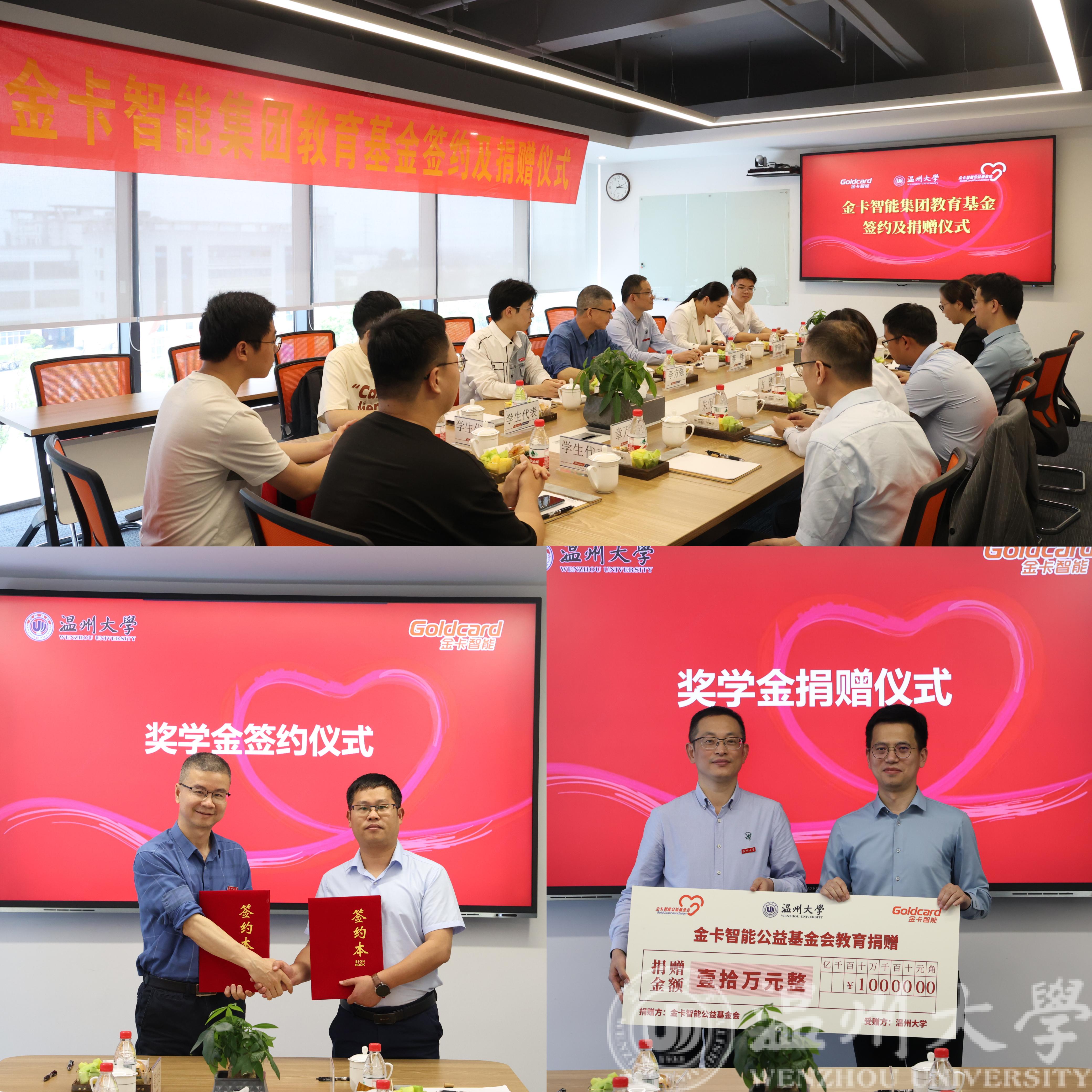 随后,双方在公司会议室举行交流会。交流会上李方强书记就正规外围买球十大平台和十大买球平台排行榜的基本情况做了详细的介绍。李书记感谢天信仪表和金卡智能为买球官网学子提供了非常优质的就业平台,并指出将来校企之间不仅可以在毕业生招聘方面沟通交流,还可以在专业培养、产学研合作等多领域开展深入合作。金卡集团天信仪表党委副书记黄曙华介绍了金卡智能集团主动履行社会责任,积极投身公益事业,组织一系列文明关爱、扶贫济困、奉献爱心等活动情况。在会议上,校企双方进行了金卡智能公益基金会温大奖学金签约仪式与捐赠仪式,每年设立10万元奖学金奖励品学兼优温大学子。会上,招生就业处蔡锋处长与现任集团副总裁的买球官网05届校友朱央洲和技术工艺部工程师、10届校友章万安等校友代表做了深入交流。据悉,目前该公司共有17名温大毕业生在各个岗位工作,蔡处长向校友们深入了解了一线就业需求。