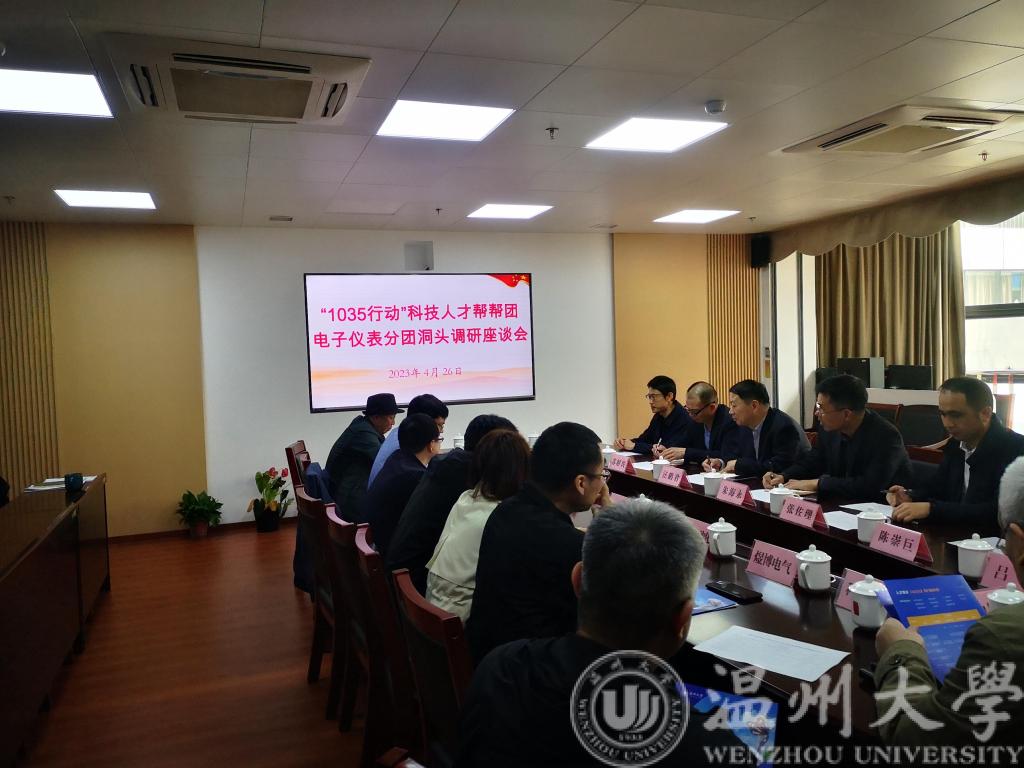 为深入贯彻落实党的二十大精神和中央促进共同富裕、省委“两个先行”决策部署,根据市《关于开展人才引领山区海岛县共同富裕“1035行动”的实施意见》目标要求,科技人才帮帮团-电子仪表分团团长汪鹏君教授携十大买球平台排行榜、温州职业技术学院相关人员一行10人于4月26日前往洞头区科技局及科技园调研电子电器产业技术堵点及需求。