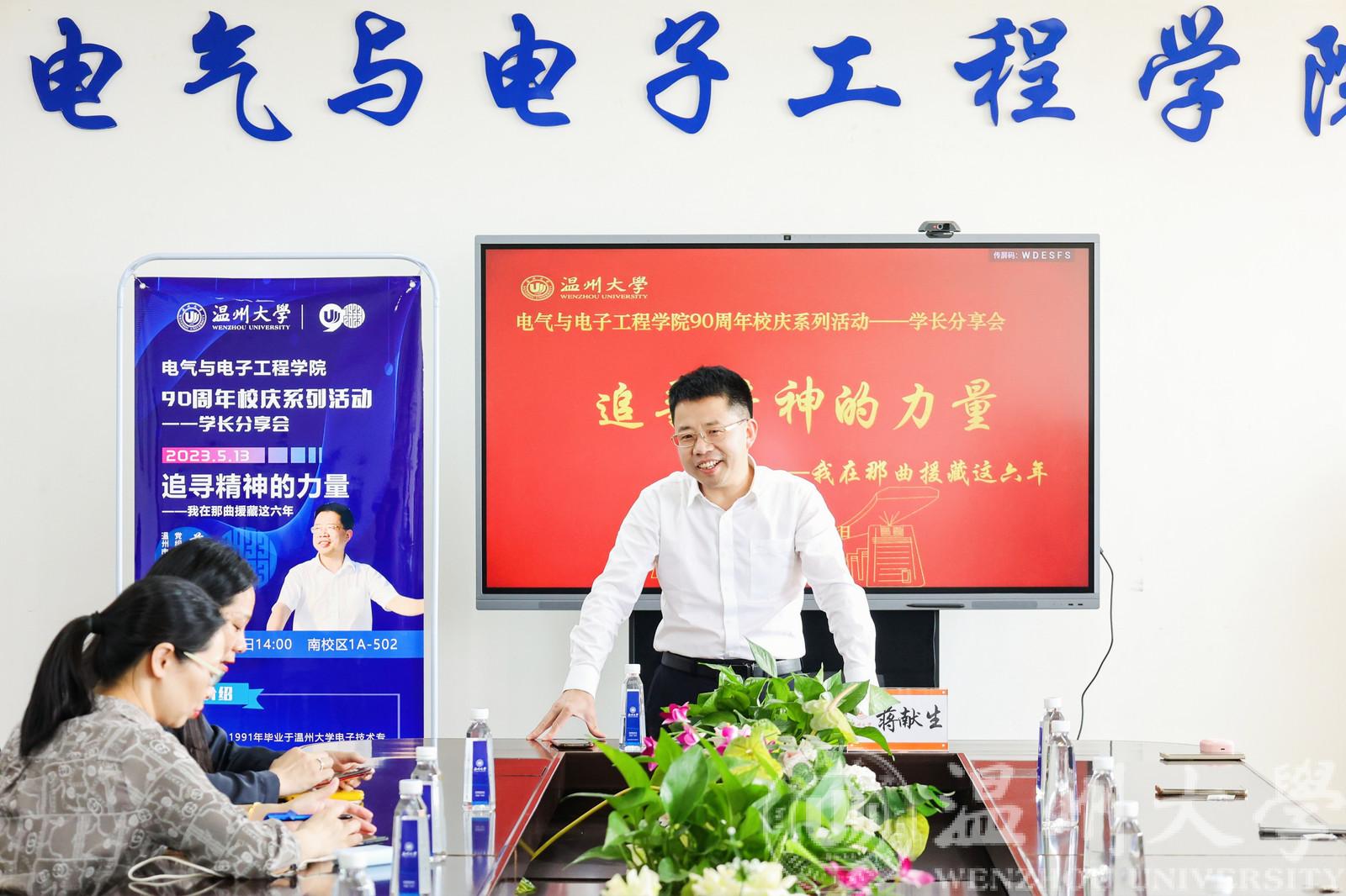 2023年5月13日下午14:00,买球官网九十周年校庆系列活动——学长分享会在学院1A-502会议室顺利举行。买球官网1991届电子技术专业校友蒋献生、学院党委副书记曾蓓蕾、若干校友代表出席了本次活动。此外,买球官网部分少数民族学生以及学生干部参与了本次活动。会议由学院党委副书记曾蓓蕾主持。