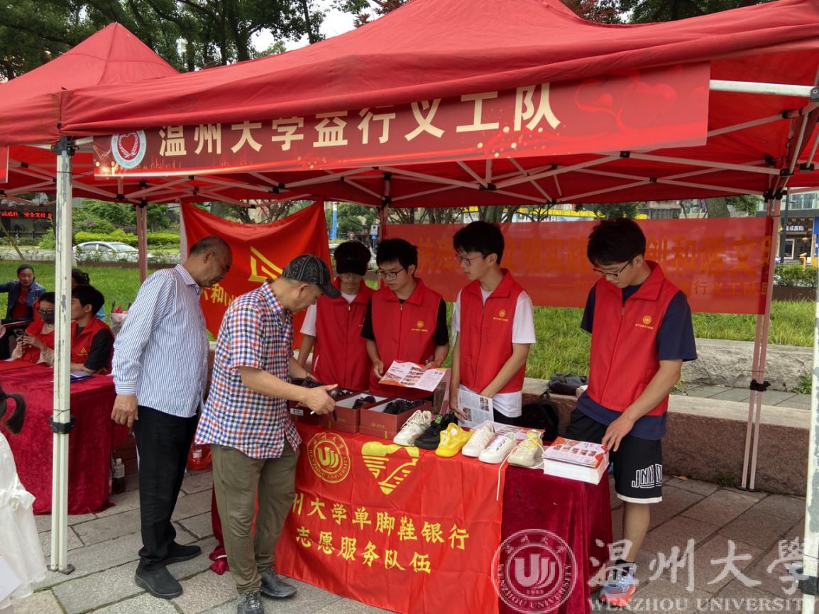 5月20日上午,亚运有我.义工同行”暨温州市第八届“慈善一条街”慈善公益服务活动启动仪式在鹿城区中山公园中山桥广场举行,买球官网单脚鞋银行志愿服务队参加了本次活动并在服务集市中为群众开展服务。