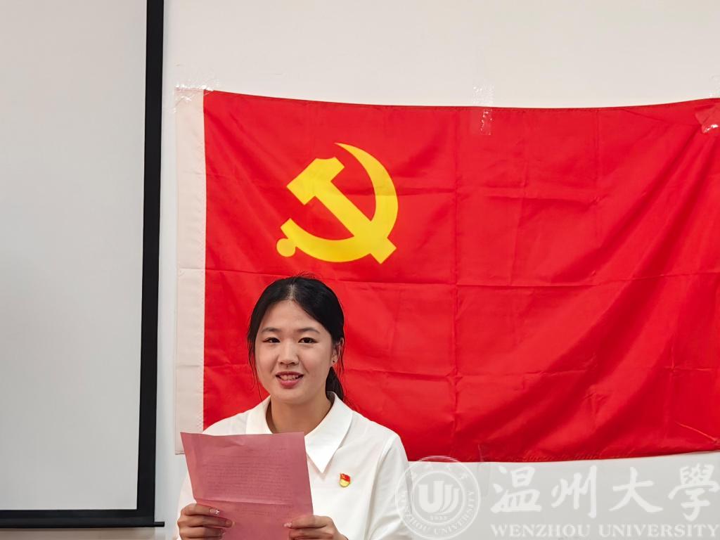 大会在庄严的国歌声中拉开帷幕,曾蓓蕾副书记在会上致辞,她向全体毕业生党员提出三点希望,希望党员们离开学院后,要争做学习型党员、实干型党员和担当型党员;随后省优秀毕业生、学生党员叶依秀代表全体毕业生党员表示会牢记为共产主义奋斗终生的铮铮誓言,始终艰苦奋斗、努力拼搏,为实现中华民族伟大复兴奉献自己的力量。