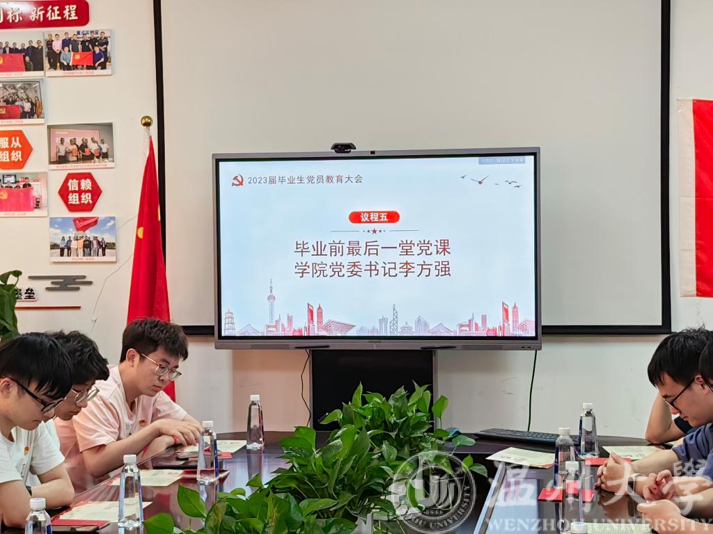 习近平总书记在党的二十大报告中指出:“当代中国青年生逢其时,施展才干的舞台无比广阔,实现梦想的前景无比光明”。为深入加强毕业生党员的党性教育、爱国教育,提高毕业生党员的政治素质和责任意识,充分发挥先锋模范作用,6月19日下午13:30,学院党委在1A512召开了2023届毕业生党员教育大会。参加会议的领导和嘉宾有学院党委书记李方强,副书记曾蓓蕾,专职组织员金海艳,大会由学工办主任廖晓安主持。
