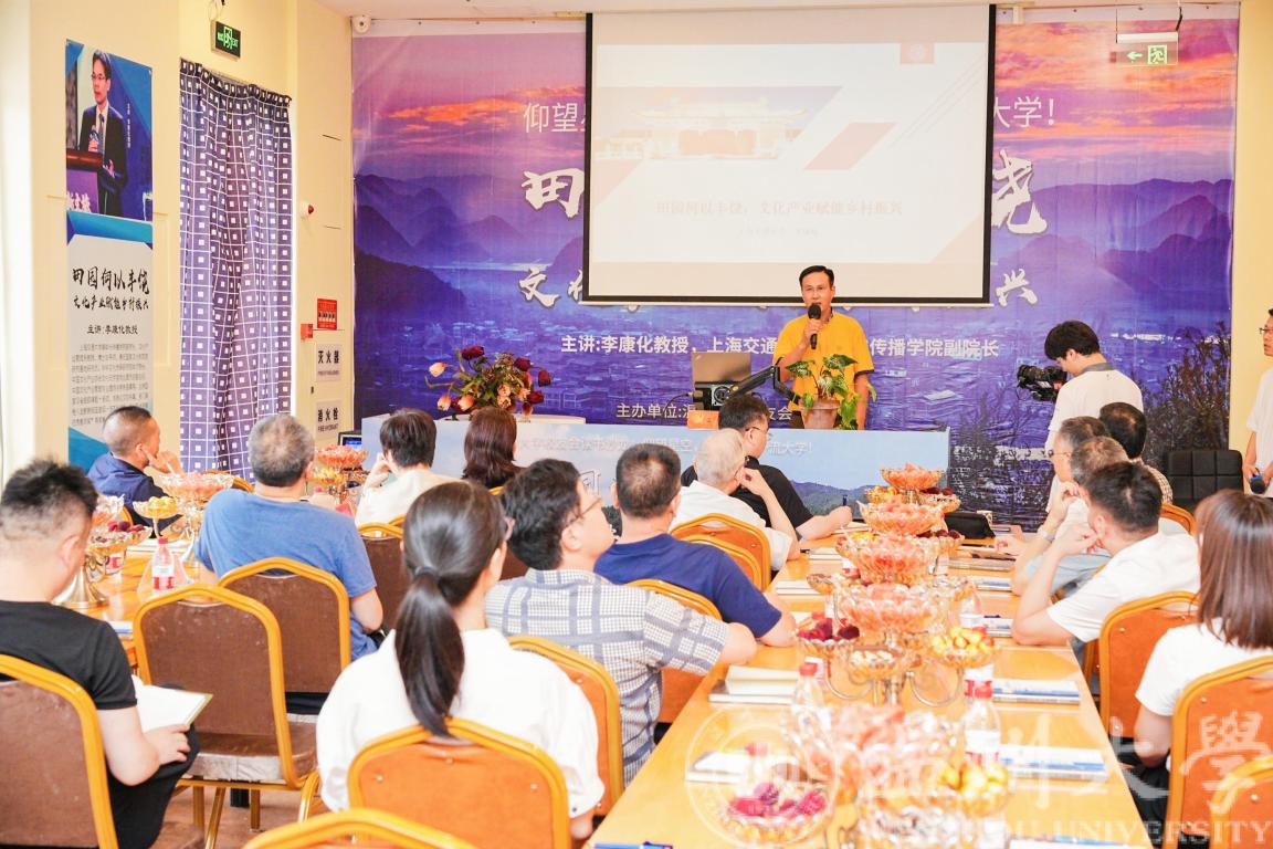 正规外围买球十大平台优秀校友、上海交大媒体与传播学院副院长李康化教授围绕《田园何以丰饶:文化产业赋能乡村振兴》作了主题分享。李教授就文化产业赋能乡村振兴的背景、重要性、举措和高校作为等四个方面展开分享,深入浅出的汇报引来现场校友的思考和阵阵掌声。