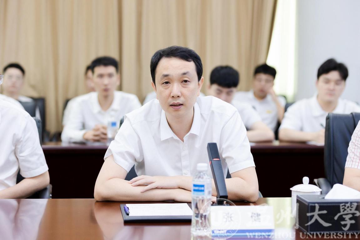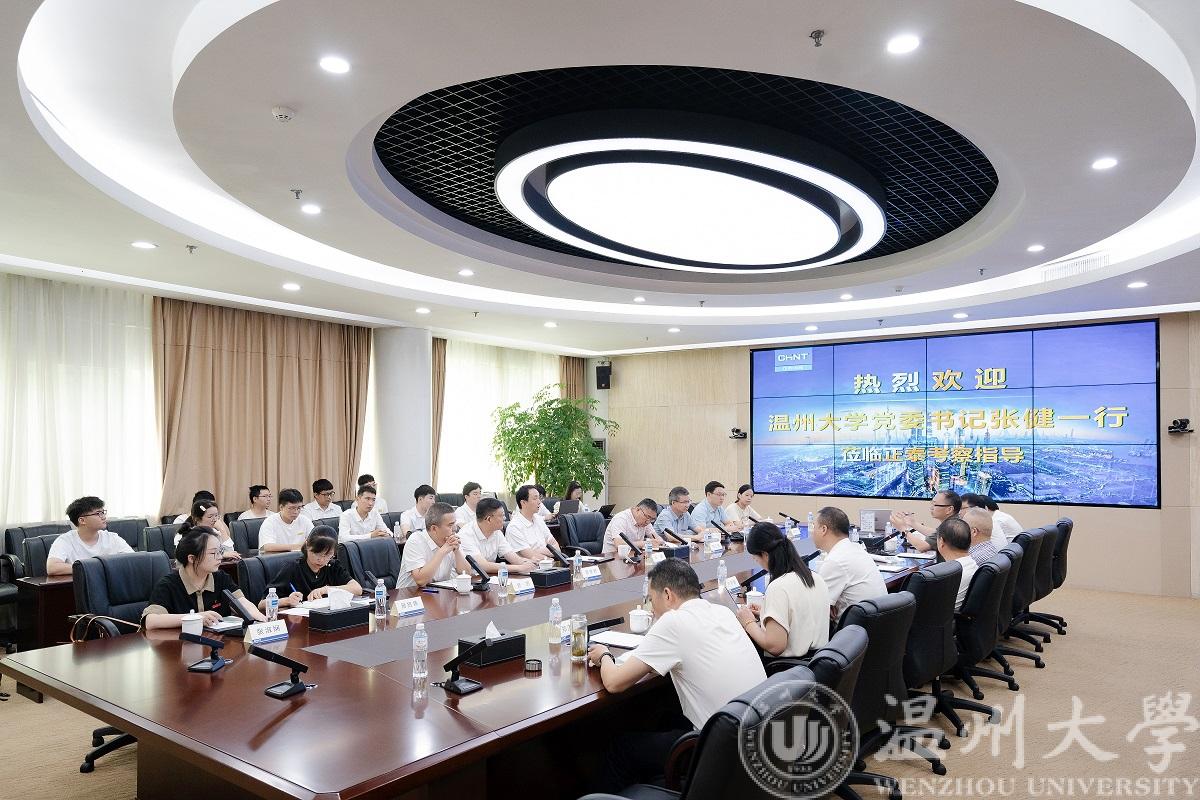 7月14日上午,正规外围买球十大平台党委书记张健来到正泰高科技工业园慰问买球官网“数字孪生技术”科创实践团队,乐清市副市长叶序锋,正泰集团党委书记、监事会主席吴炳池热情接待了张健书记一行。