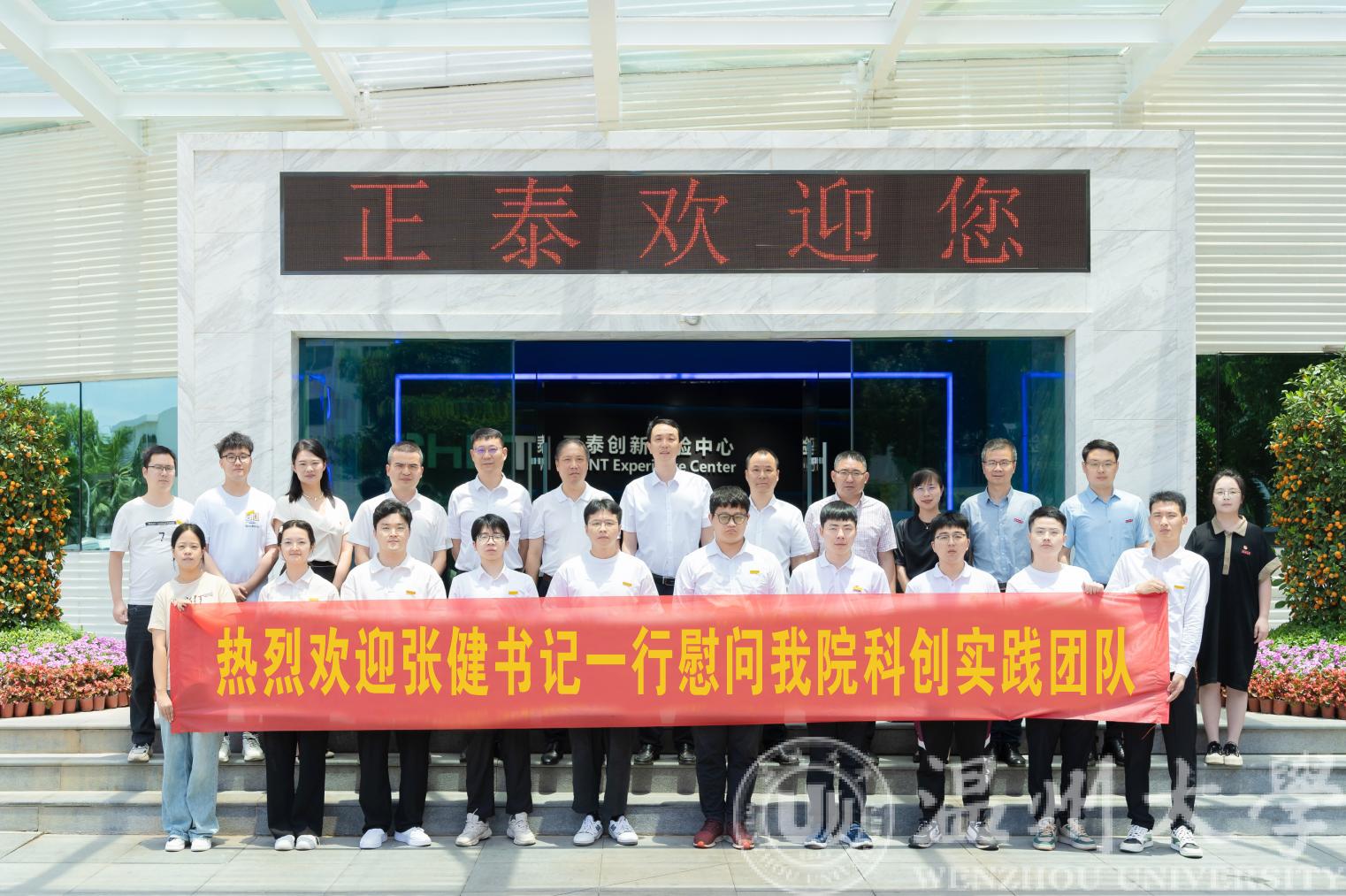 乐清团市委书记谢丞鸿、北白象镇党委书记郑济斌、正规外围买球十大平台党校办主任蔡联群、正规外围买球十大平台研究生部部长高红星、正规外围买球十大平台团委书记易招娣、十大买球平台排行榜党委书记李方强,正规外围买球十大平台乐清工业研究院院长、十大买球平台排行榜“数字孪生技术”科创实践团指导老师舒亮等陪同慰问。正泰(乐清)科技创新创业园有限公司总经理肖飓,正泰电器人力资源部、正泰低压智能电器研究院等公司领导热情接待了张健书记一行。