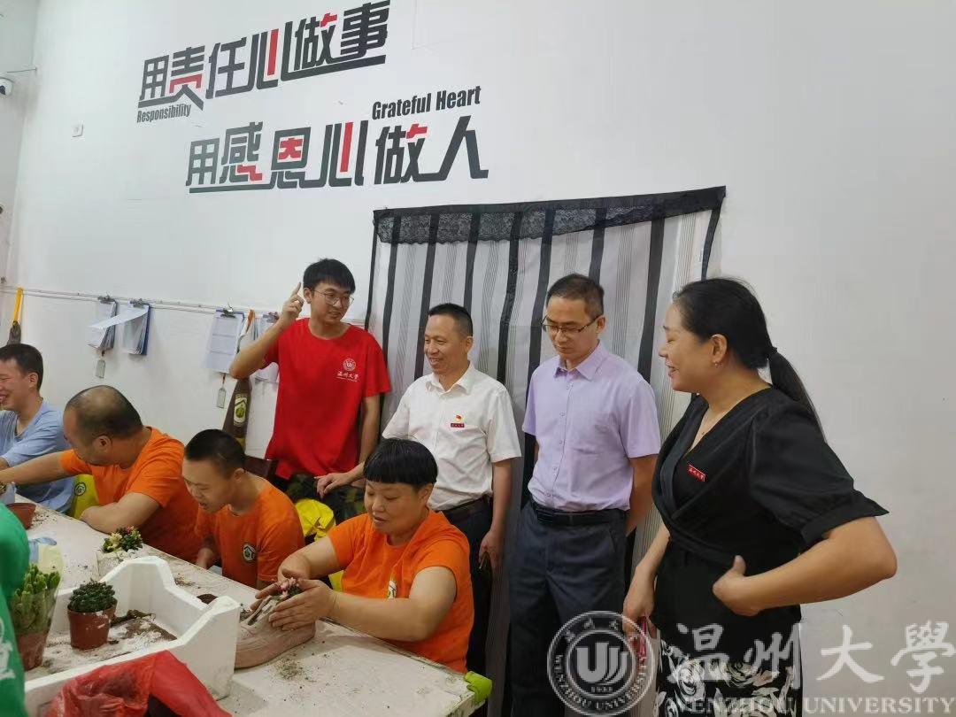 7月14日上午,正规外围买球十大平台党委委员、副校长王舜在龙湾区残联党组成员、副理事长林时察的陪同下,来到龙湾区青苗残疾人之家慰问买球官网益行暑期社会实践队。正规外围买球十大平台电子工程学院党委副书记曾蓓蕾、正规外围买球十大平台团委副书记徐瑶、正规外围买球十大平台团委韩新华、十大买球平台排行榜辅导员陈海彤等陪同慰问,龙湾区青苗残疾人之家项目负责人麻玉娇等热情接待王舜副校长一行。