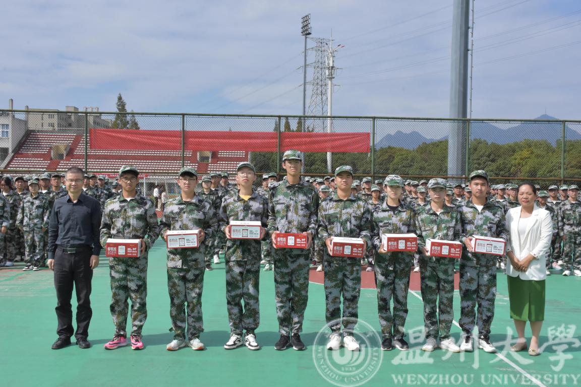 随后,李方强书记和曾蓓蕾副书记给教官和学生代表分别发放了慰问品。