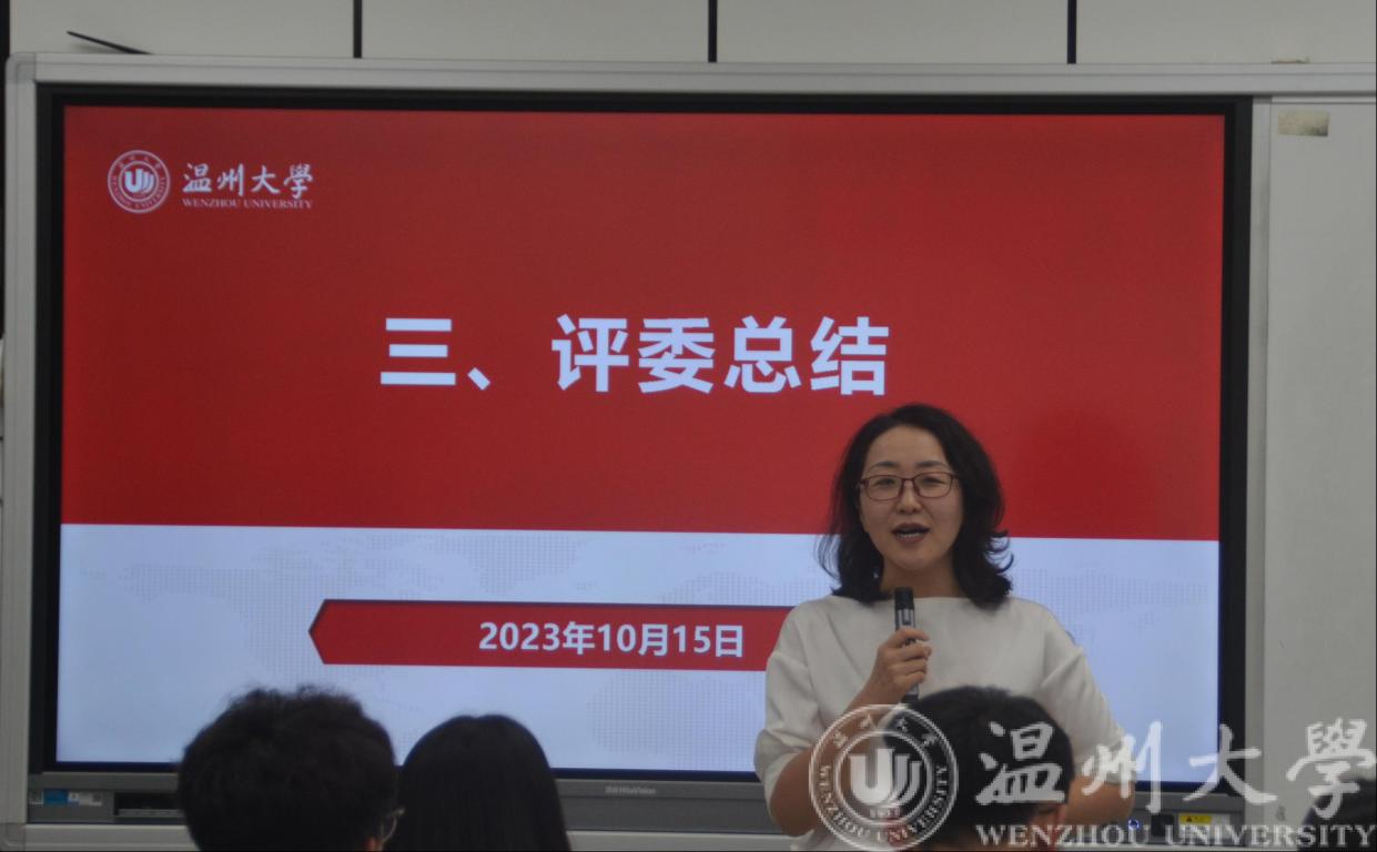 所有选手展示完毕后,朱丽莉老师作为评委代表总结发言。她赞扬了买球官网大一新生踊跃参赛的热情,并建议同学们不要拘泥于模板,既要仰望星空,又要脚踏实地:首先,同学们的职业规划要能结合经济社会发展的需要,要有情怀;其次,同学们对目标职业要有充分的了解;最后,职业规划大赛作为一项比赛,同学们要注重一些外在的要素,例如着装、PPT等。