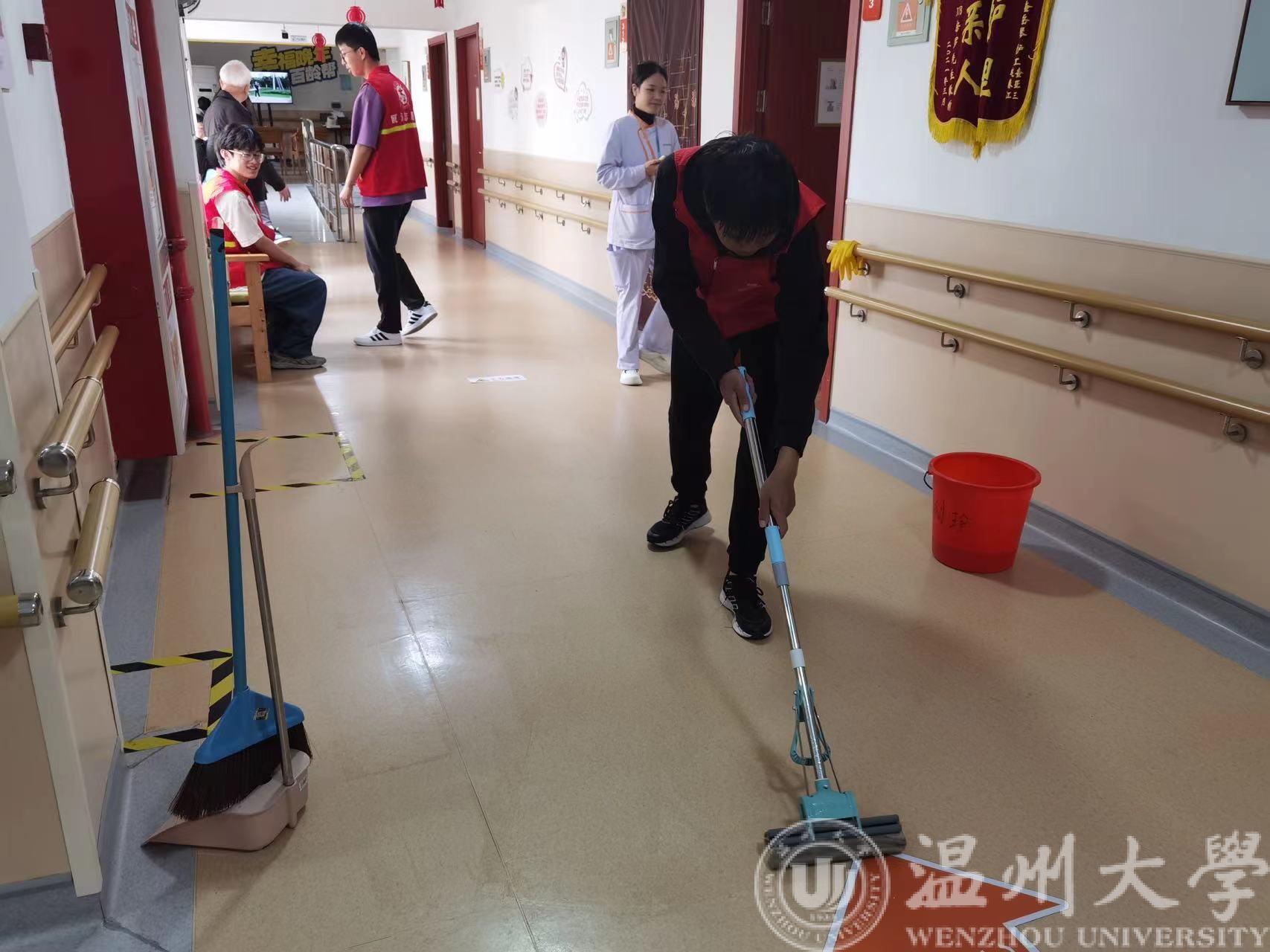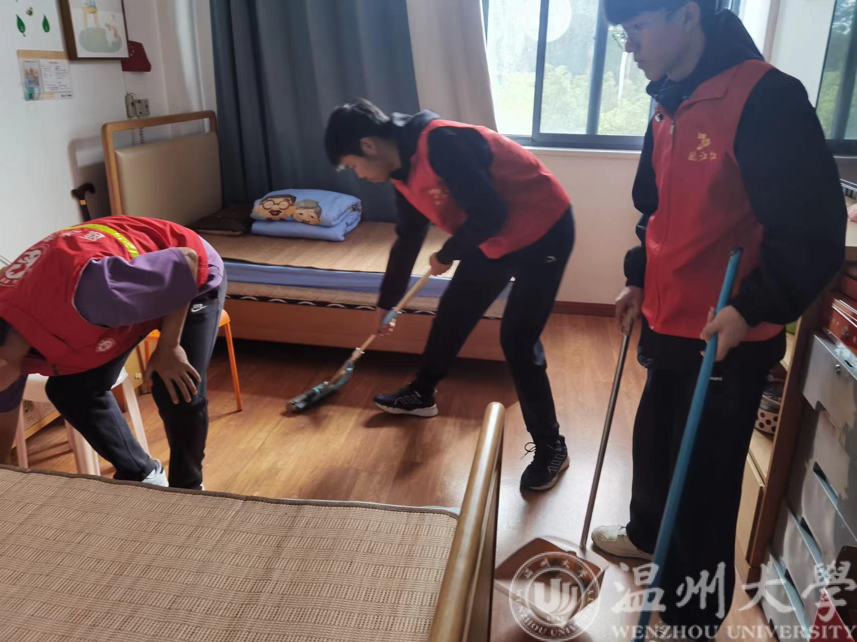 最后,同学们为老人们打扫了宿舍卫生。屋外阳光明媚,犹如屋内暖意融融,活动在大家的欢声笑语中结束。