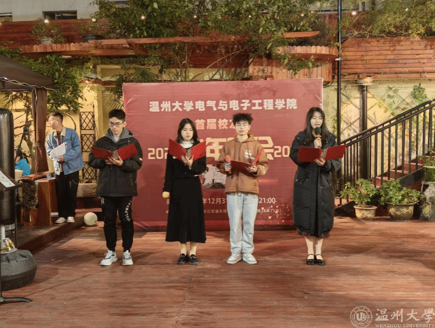 晚上,举办了首届校友会跨年晚会。晚会由副秘书长潘道品主持,校友代表及部分师生参与。晚会在买球官网23级四位同学的诗朗诵《天南海北师生情》中拉开序幕,同学们的朗诵声情并茂,诉说着一段段难舍难分的同学情与师生情。潘龙飞老师献唱的《海阔天空》勾起了校友们对青葱岁月的美好回忆。随后,校友们表演了古琴、洞箫和舞蹈等精彩节目,晚会在师生的欢笑中达到高潮。