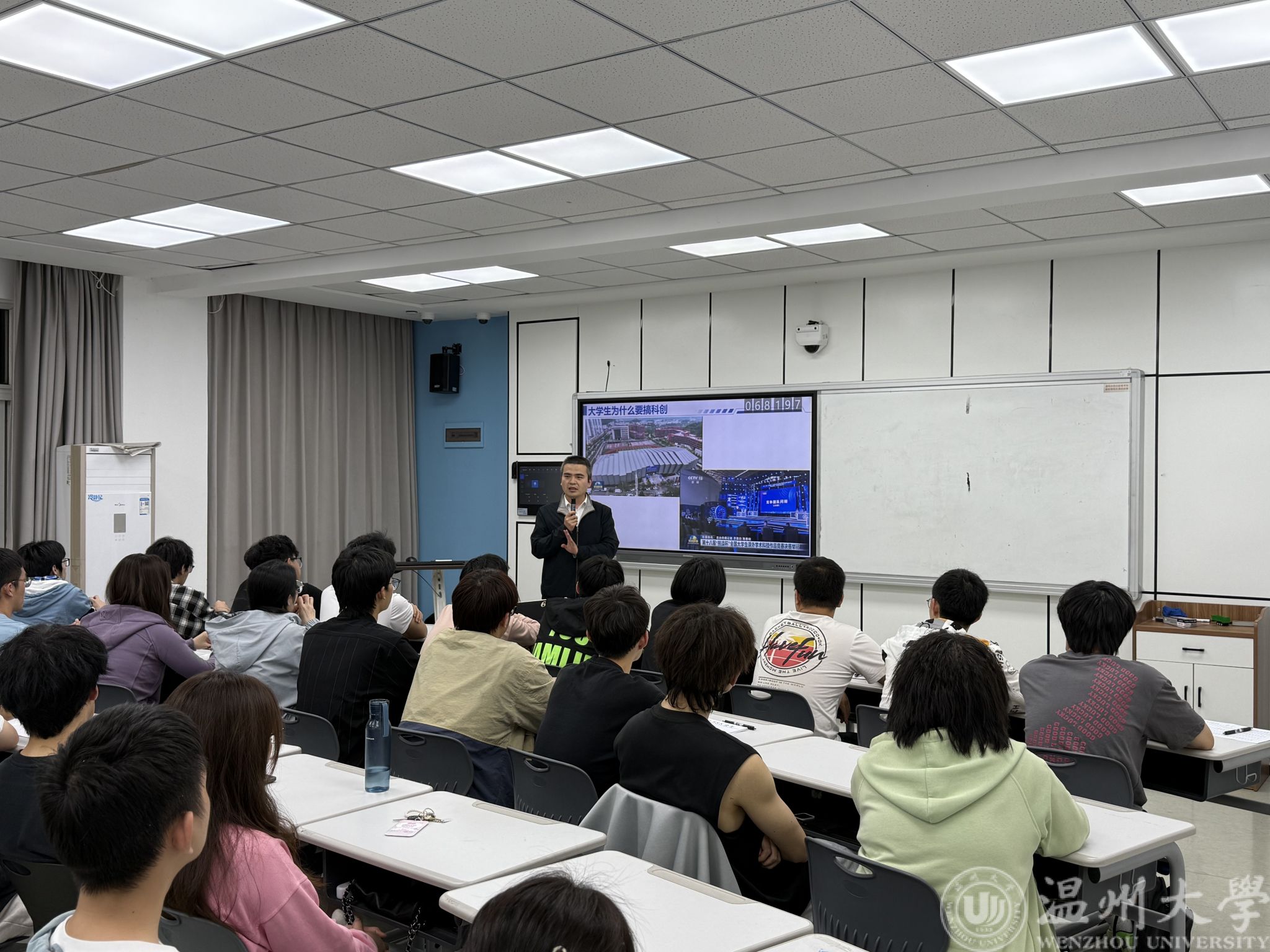 锚定价值航向,洞悉科创意义。舒院长在开场点明,大学生参与科创,不仅能满足探索未知的好奇心,投身热爱的研究,还能将知识运用到前沿科技领域,为社会创造价值,实现自我价值的升华。在提升综合能力层面,舒院长指出,科创竞赛和实践是培养人才的关键,通过参与科创,学生能有效提升解决实际问题的能力;科创还能磨炼意志品质,帮助学生树立不服输的精神,实现自我成长;此外,科创也能为学生搭建与顶尖学者交流的平台,拓宽了学生的视野,为未来发展创造更多可能,不仅如此,参与科创能够显著提升学生的综合业务素质,优化简历,为升学和就业增添竞争力。