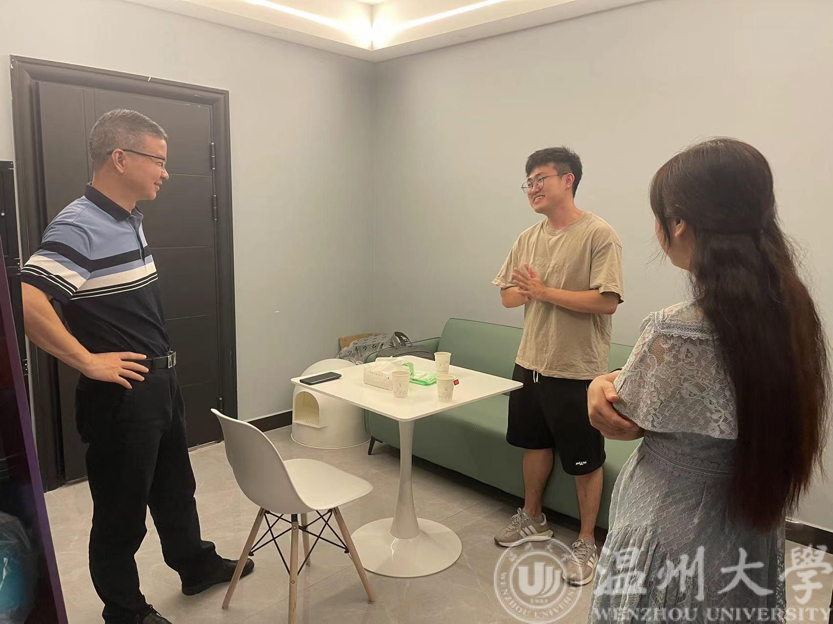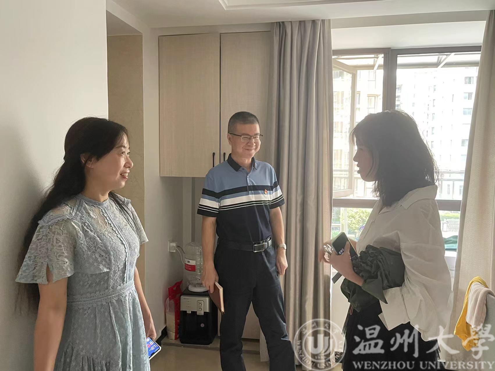 心系教师,情暧人心。9月23日下午,学院党委书记李方强、办公室主任薛漫芝到新进教职工家中开展走访慰问活动,通过进家入户探访的方式对新进教职工进行了慰问,深入了解青年教师的居住生活及公寓管理情况。