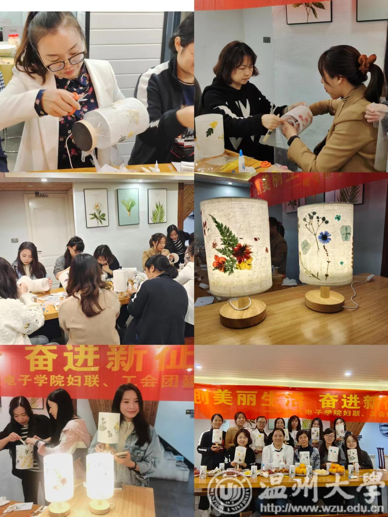 在热身后,老师们坐下来一起手工制作花草灯。排版、压花、定型,老师们聚精会神的进行着每一步。时而有老师们交流着自己设计的图案的寓意,时而有老师们对同伴制作的赞叹声。经过一个小时的“奋战”,精美的“花草灯”就完成了,老师们纷纷与自己的成果合影留念。
