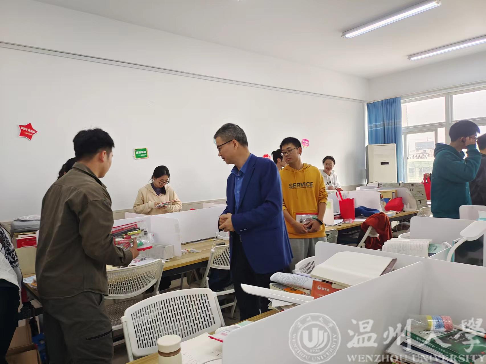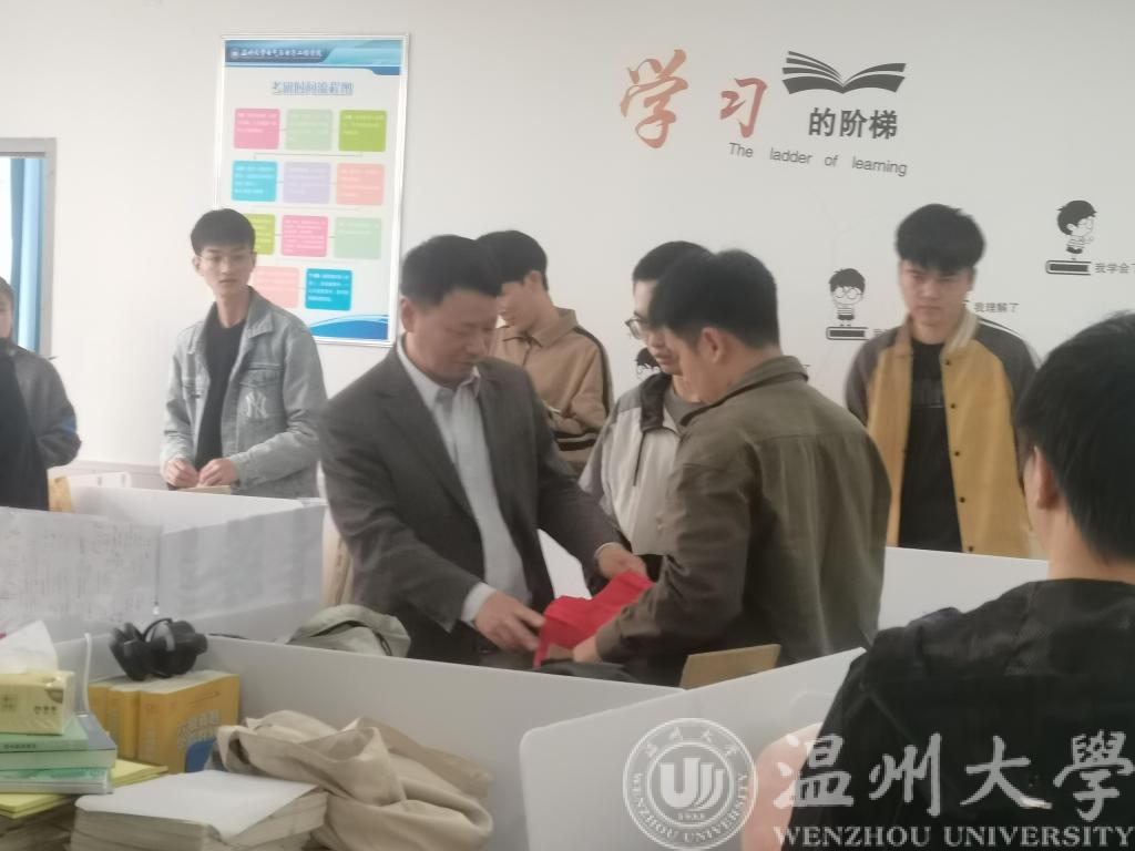11月24日下午14:00,学院院长汪鹏君、党委书记李方强、党委副书记曾蓓蕾及学工办辅导员来到学院316和318考研自习室,为正在备考的考研学子送上学院精心准备的“考研大礼包”。