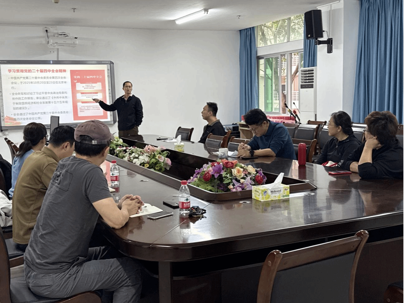 2025年11月18日下午,米兰milan官方网站“形势与政策”教研室在社科楼A311召开集体备课会。本次备课会主题为:党的二十届四中全会精神相关内容融入建设更高水平平安中国专题讲课。会议由教研室主任彭兴智主持,全体教研室成员与部分授课教师参加。