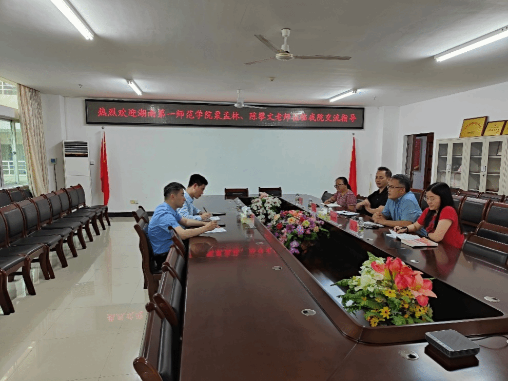 4月11日上午,湖南第一师范学院马克思主义学院国家社科基金重点项目(项目名称为:调查研究在习近平新时代中国特色社会主义思想实践课中的运用)课题组粟孟林、陈攀文一行来米兰官网调研交流。米兰milan官方网站蔡文举副院长、王一闳副院长、习近平新时代中国特色社会主义思想概论教研室主任刘涵、骨干教师方英群参加交流。