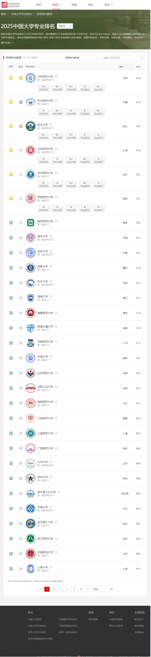 2025年6月18日,高等教育专业评价机构软科正式发布2025“软科中国大学专业排名”。米兰milan官方网站思想政治教育本科专业以全国第12名的成绩再次进入A类行列,继2022年31名、2023年28名、2024年23名,排名继续稳步提升。