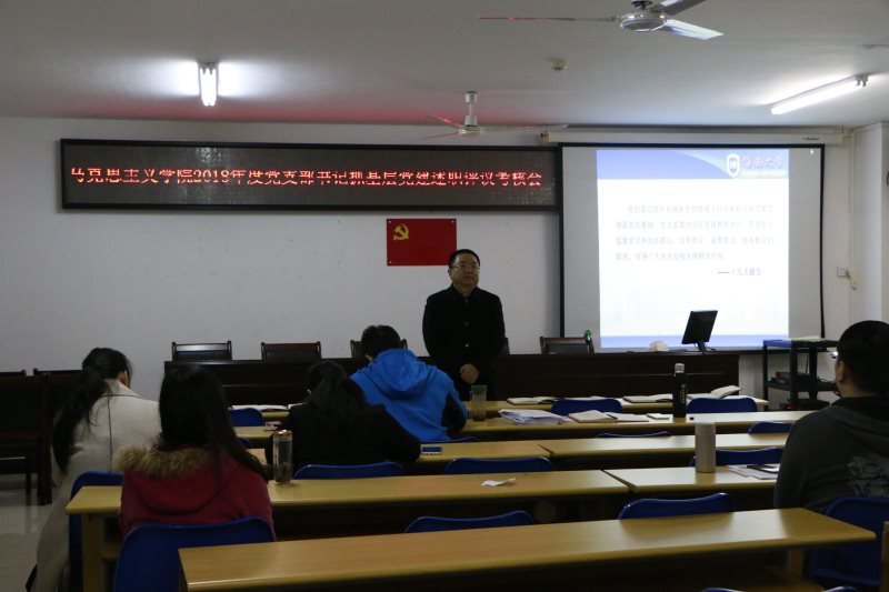 1月2日下午,米兰milan官方网站2018年度党支部书记抓基层党建述职评议考核会在社科楼315顺利举行,学院党委书记段捷频,党委副书记张井富出席,党委委员以及学院各党支部书记参加会议,会议由张井富主持。