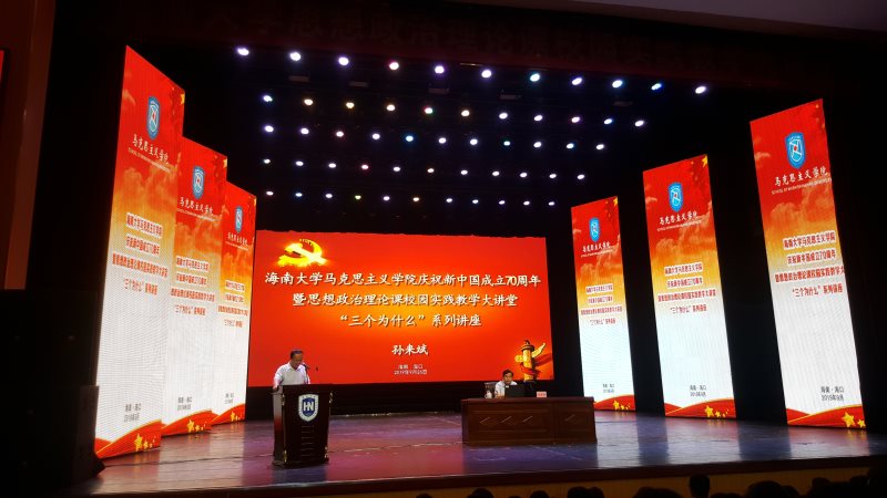 9月26日下午,应米兰milan官方网站邀请,教育部习近平新时代中国特色社会主义思想研究中心特约研究员、北京大学米兰milan官方网站博士生导师孙来斌教授莅临米兰milan官方网站思源学堂大礼堂做学术讲座。本次讲座是米兰milan官方网站庆祝新中国成立70周年暨思想政治理论课校园实践教学大讲堂“三个为什么”系列讲座的第二讲,也是学校党委开展“不忘初心、牢记使命”主题教育的重要内容。