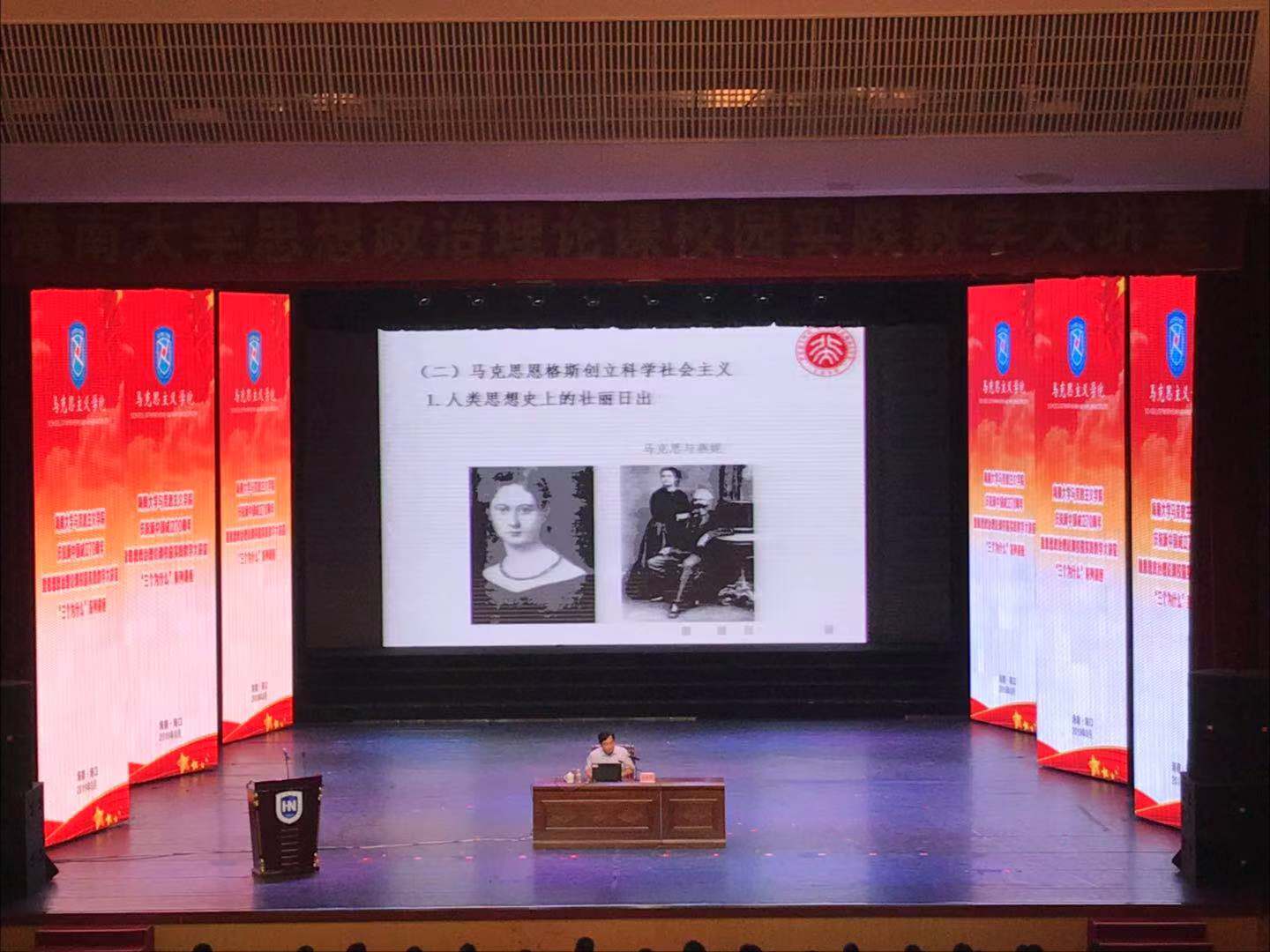 米兰milan官方网站党委书记武耀廷,副校长胡新文、王崇敏、梁谋、叶光亮,校党委常委、组织部部长韩淑梅,校党委常委、宣传部部长谭勇,各学院书记、副书记,全校各党支部书记,米兰milan官方网站思想政治理论课教师,2018级部分本科生共计1000余人聆听讲座。讲座由马克思主义副院长王善主持。