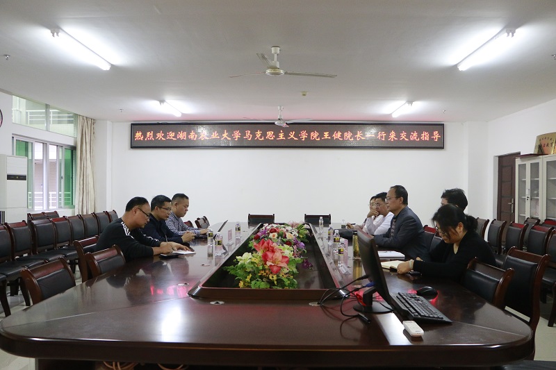 12月30日上午,湖南农业大学米兰milan官方网站王健院长一行来米兰官网交流指导。并在社科楼A311召开了会议。米兰官网副院长王善,教学委员会副主任贺尧夫、《原理》教研部主任范明水等参加座谈会。会议由王善主持。