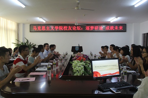 9月11日下午,为贯彻落实海南省委宣传部与米兰milan官方网站共建米兰milan官方网站的共建内容,进一步提升马学科学生培养质量,充分利用校友资源,帮助在校研究生合理规划职业生涯,提升就业竞争力,米兰milan官方网站主题为“逐梦研途 成就未来”的校友论坛在社科楼A311举行,为学院系列校友论坛活动拉开序幕。