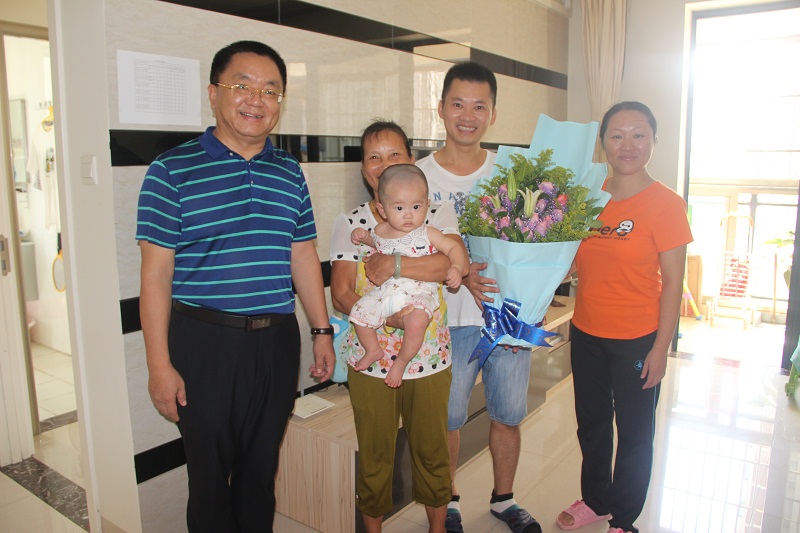 9月13号上午 ,在中秋佳节到来之际,院工会主席段捷频率队走访慰问了林德浩、吴清一和王熙雯三位马院年轻教师及其新生儿,并为他们送去了鲜花和水果。王齐冰、闻燕华等工会委员参加慰问活动。