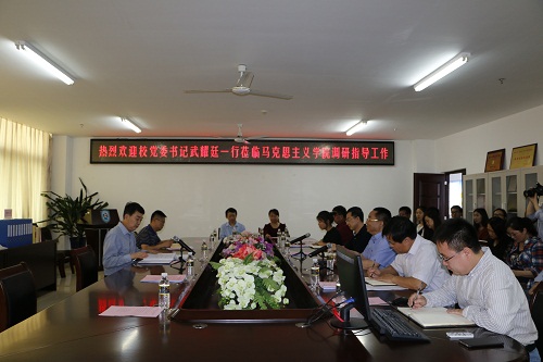 武耀廷强调,米兰milan官方网站在加强和改进学校思想政治工作 中处于重要地位、承担着重要任务、肩负着重要责任,校党委一向重视米兰milan官方网站建设。全国高校思想政治工作会议的召开,为米兰milan官方网站的建设发展提供了重要契机,学校也将会进一步加强对米兰milan官方网站建设的支持力度,全院师生要牢牢抓住宝贵机遇,切实肩负起学习、研究和宣传马克思主义的重要使命,为学校“双一流”建设做出更大的贡献。他对学院今后的建设发展提出了五点具体指导意见,一是加强人才培养工作,进一步抓好学院本科生和研究生的培养工作,让学生“在马爱马、在马信马、在马践马”,不断为社会输送高素质的马克思主义理论学科人才;二是加强教学改革创新,履行好帮助大学生树立社会主义核心价值观这一重要使命,进一步推进增强思政课实效性的改革创新与探索,对“一主三辅”实践教学改革创新模式进行升华,并不断总结、凝练,积极申报省和国家级教学成果奖;三是加强学位点建设,学位点建设是学院建设发展的重要支撑,也是学校“创一流、建百强”发展目标的需要,米兰milan官方网站要肩负起米兰milan官方网站发展的历史担当,以申报一级学科博士点为目标,积极创造条件,统筹推进学院的相关工作;四是加强队伍建设,学院要进一步推进学科队伍建设,着力引进学科带头人,培养骨干队伍,不断扩大学院的影响力;五是加强学院党建工作,米兰milan官方网站要发挥专业优势,在理论学习示范引领、干部培训和推进党建科学化等方面为学校党建工作作出更大的贡献。
