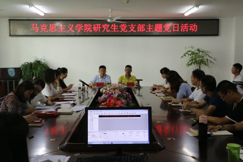 研究生主题党日活动围绕三个主题开展,一是针对2017级非党员研究生的入党宣传动员,二是迎接党的十九大工作研讨,三是研究生党支部支委换届。活动中,研究生党支部书记张君成向2017级非党员研究生新生解读了马学科高层次人才培养在政治素质方面的要求,介绍了研究生党支部组织发展工作情况,带领全体研究生党员解答了非党员研究生关于如何写好入党申请等相关问题;通过党支部迎接十九大工作研讨活动,进一步强化了所有研究生党员的政治意识和结合时政开展学术研究的意识,形成了贯彻落实校党委和学院党委相关要求,以实际行动迎接党的十九大胜利召开的支部工作方案;通过党支部支委换届大会,选举产生新一届支委成员。