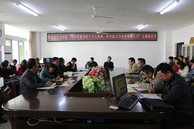 为深入学习贯彻党的十九大精神和认真贯彻落实海南省委、米兰milan官方网站党委关于“举全省之力办好米兰milan官方网站”的指示精神,12月19日下午,米兰官网在会议室召开“学习贯彻党的十九大精神,举全省之力办好米兰milan官方网站”主题研讨会。学院领导班子,各系(部)负责人及全体教职工参加研讨会。