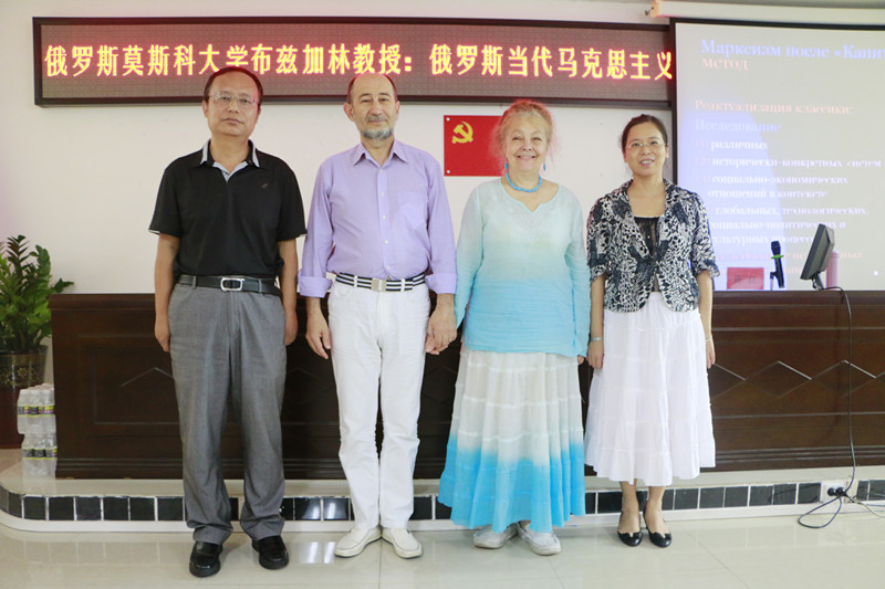6月19日下午,莫斯科大学马克思主义研究教育中心主任、终身荣誉教授布兹加林教授和莫斯科金融法律大学布拉夫卡教授受邀来米兰官网作题为“俄罗斯当代马克思主义”的学术讲座。讲座由海南师范大学陈红教授担任翻译,米兰milan官方网站副院长王善主持,米兰官网部分师生共同参加。