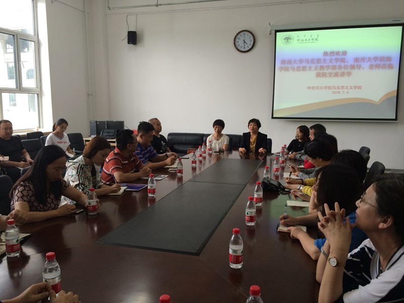 7月4日下午,在呼伦贝尔学院米兰milan官方网站会议室举行座谈会。呼伦贝尔学院米兰milan官方网站褚金芬院长对米兰官网教师的来访表示欢迎,她介绍了呼伦贝尔学院米兰milan官方网站在学科建设、课程改革等方面的重要举措。段捷频书记简要介绍了米兰官网的发展情况和思想政治理论课教学改革情况。随后,与会人员就思想政治理论课的教学培养模式和网络课程建设等方面进行了深入交流。双方都表示,希望今后多加强交流合作,进一步提高思想政治理论课的教学水平。