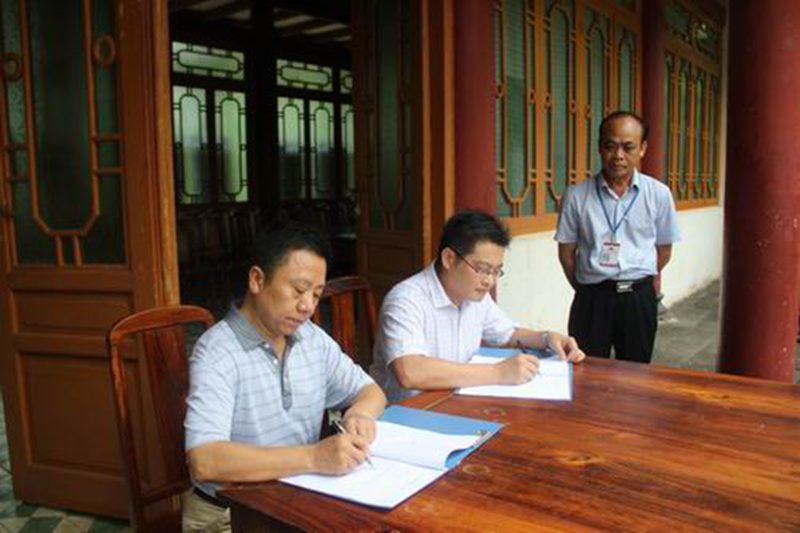 社会实践队伍首先前往东坡书院。上午十点,共青团儋州市委王明魁书记与米兰milan官方网站张云阁副院长在东坡书院迎宾堂前共同签定了“米兰milan官方网站思想政治理论课东坡书院社会实践教学基地共建协议”, 签字仪式由共青团儋州市委李珠副书记主持,王明魁书记和张云阁副院长分别发表了热情洋溢的讲话。随后,米兰milan官方网站张朔人教授现场为学生作了50分钟题为“苏东坡海外事迹与海南‘客贤’记忆”的精彩演讲,演讲不断被学生热烈的掌声所打断。现场教学结束后,内导引领学生在东坡书院园区进行了实地参观考察。