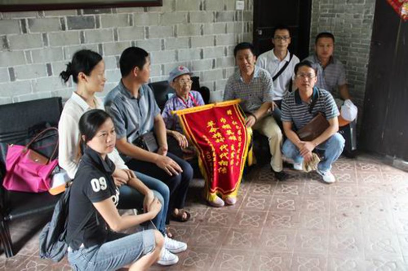张云阁副院长代表米兰milan官方网站向103岁高龄的红色娘子军老战士王运梅赠送了锦旗