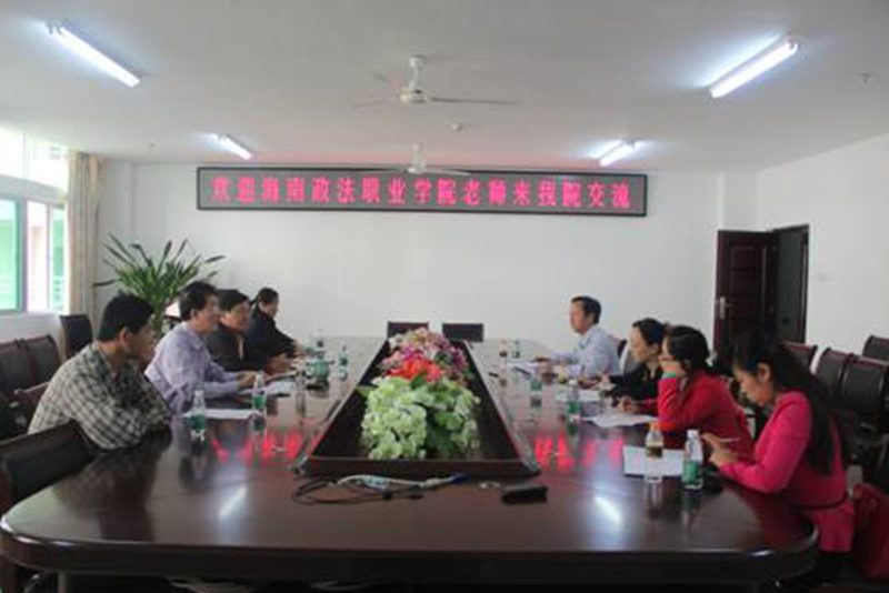 11月29海南政法职业学院社科部陈焕随副主任等一行多人,就当前思想政治理论课教学方法改革与米兰官网教师进行交流。院党委书记梁谋主持座谈交流会。