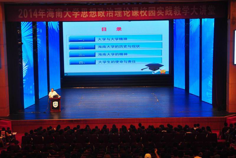 刘康德教授从大学与大学精神、米兰milan官方网站的历史与现状、米兰milan官方网站的精神和大学生的使命与责任四个方面展开了一场精彩的演讲。 刘康德教授在报告中结合自身经历、运用大量国内外著名高校的相关图片和资料,阐述了现代大学的起源、功能和本质;引领同学们回顾了米兰milan官方网站的辉煌历史、优良传统和大学精神;深刻诠释了“海纳百川、大道致远”的海大校训和“自强敬业、厚德弘毅”的海大校风。他在报告中着重强调了学校当前在推进内涵发展重要时期的办学理念,对提升“两个力”进行详细解读,提升学生的社会竞争力和教师的社会影响力,关键在于注重培养学生的思想力、意志力、亲和力、学习力、实践力、适应力、创造力;提升教师的学术影响力、教学影响力、社会服务力、文化传承与创新力。刘康德教授指出,大学生的第一要务是学习;二是要有理想;三是要有责任感。他要求每个海大学子继承和弘扬海大人牢记使命、报效祖国的爱国精神;埋头苦干、无私奉献的敬业精神;严谨治学、精益求精的科学精神;海纳百川、包容开放的协作精神;自强不息、勇攀高峰的创新精神,彰显海大人海纳百川的大气,坚持真理的正气和敢于创新的勇气。让这些精神成为我们一代代海大人励精图治,追求卓越的恒久动力和不竭的精神源泉。他希望,同学们积极弘扬和践行海大精神,把中国梦、海大梦和自己的梦有机结合起来,为推动学校加快实现内涵提升、不断向百强高校目标迈进做出应有的贡献。