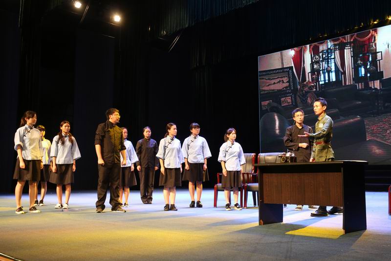 米兰milan官方网站副校长王崇敏为获二等奖剧目的同学颁奖