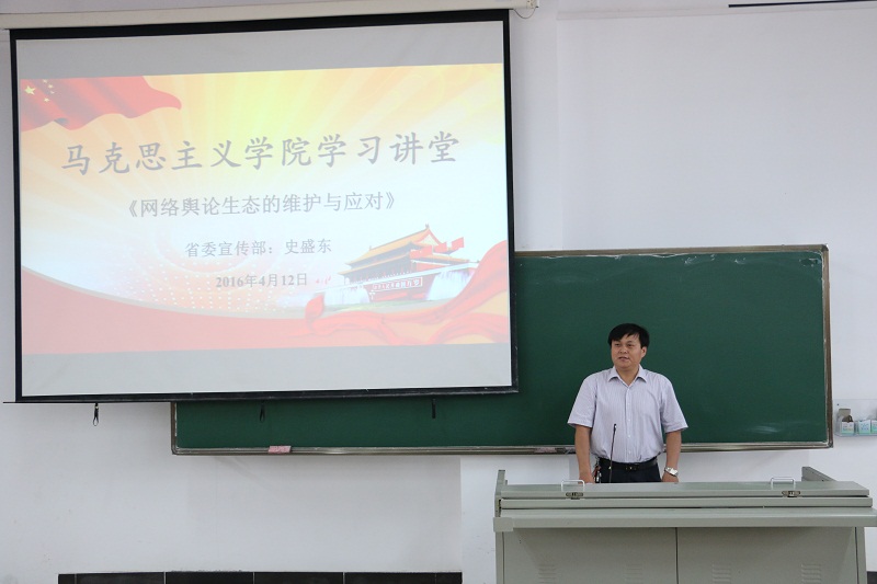 4月12日下午,省委宣传部、省互联网信息办公室网络新闻管理处处长、省互联网与信息化安全专家史盛东应邀为米兰官网研究生和本科生作题为“网络舆论生态的维护与应对”的专题报告。省委宣传部理论处副处长杨志斌,米兰milan官方网站宣传部王群生,米兰milan官方网站党委书记段捷频及部分老师旁听报告。报告会由李辽宁副院长主持。