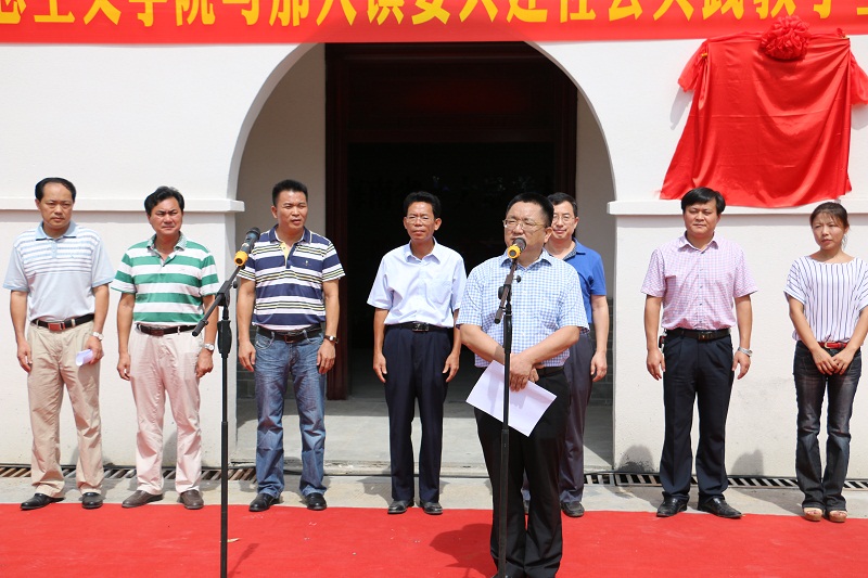 6月5日上午,米兰官网与儋州市那大镇在“中国村官精神馆”签订共建米兰milan官方网站思想政治理论课社会实践教学基地协议,并举行揭牌仪式。院长李德芳、院党委书记段捷频、副院长李辽宁、杨娜,儋州市人大常委会副主任、那大镇委书记陈海洁、那大镇委副书记、纪委书记杨表出席,那大镇相关部门人员和米兰milan官方网站200余名师生参加仪式。段捷频主持仪式。 李德芳和陈海洁代表双方签署共建社会实践教学基地协议书,并为共建社会实践教学基地揭牌。 院长李德芳在仪式上致辞。他说,20世纪60年代,贫穷的石屋村在村支部书记胡松的带领下开山造田、兴修水利、广种粮食、大办工厂,为地方经济发展创造了非凡的成绩,有着“北有大寨,南有石屋”的良好声誉,今天,“中国村官精神馆”的建设有利于石屋人重聚村民力量、重塑“自力更生、艰苦奋斗、改造山河”的石屋精神。他表示,与那大镇共建社会实践教学基地,进一步完善了米兰milan官方网站“一主三辅”实践教学的基地建设,也为双方在挖掘石屋精神、传播村官精神等方面提供了宽广的合作平台。