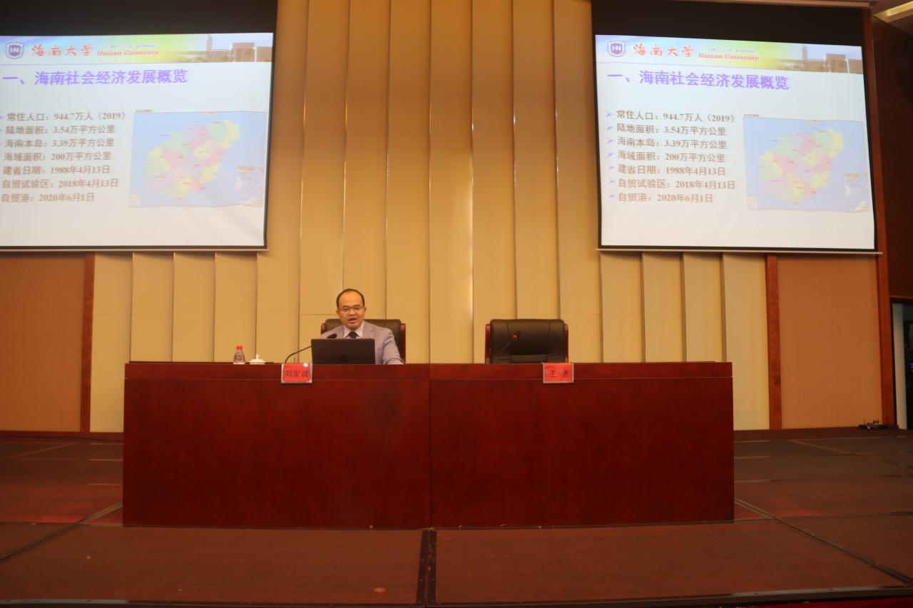 青年大学生是祖国的希望,民族的未来,也是未来海南自贸港建设的接班人。为帮助同学们进一步学习习近平总书记的重要指示精神,贯彻落实《海南自由贸易港建设总体方案》,10月20日下午,米兰milan官方网站第十三期形势与政策时事论坛在社科楼二楼报告厅举办。米兰milan官方网站刘家诚教授受邀为米兰milan官方网站师生作主题为《海南自由贸易港建设总体方案核心政策解读》的专题报告,米兰milan官方网站副院长王善出席报告会,学校“形势与政策”授课老师及部分学生参加报告会活动。会议由米兰milan官方网站副院长王善主持。
