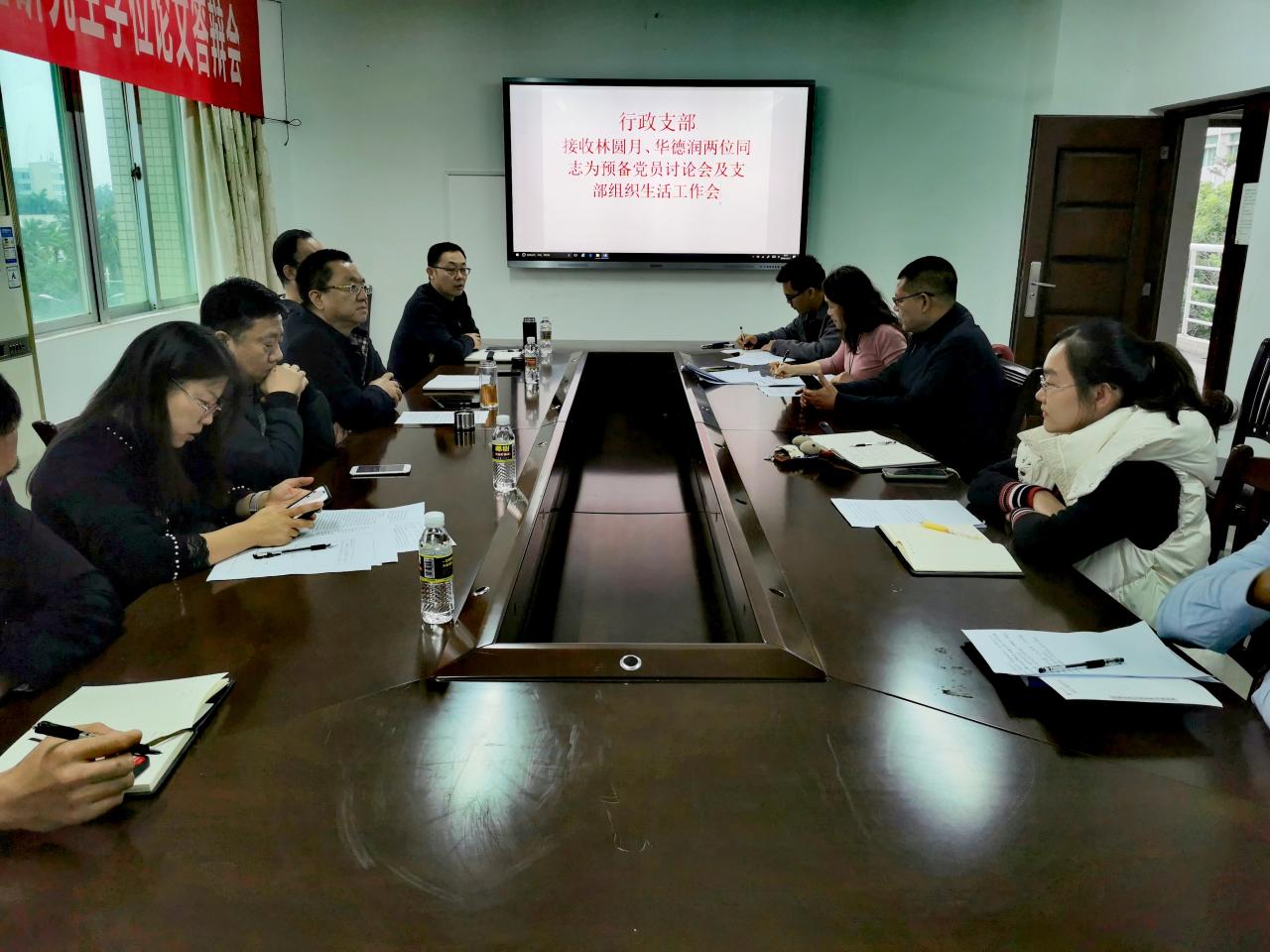 会议认真讨论了吸收林圆月、华德润两位发展对象为预备党员问题。在学院党委的高度重视与正确领导下,行政党支部按照党员发展细则从严从实对两位同志进行了全方位的考察,严把质量关。