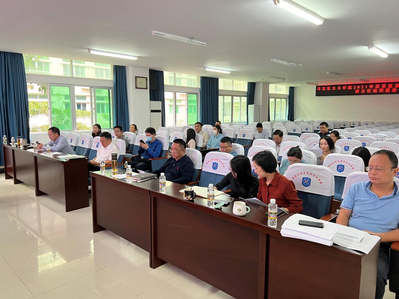 3月6日上午,米兰milan官方网站在社科楼A309举行2021年度系室主任、党支部书记、班主任述职汇报会。院长张云阁、院党委书记段捷频、副院长杨娜、王善、吴朝阳、秦晓华,院党委委员、副处级辅导员张君成,全体系室主任、党支部书记、班主任参加会议。