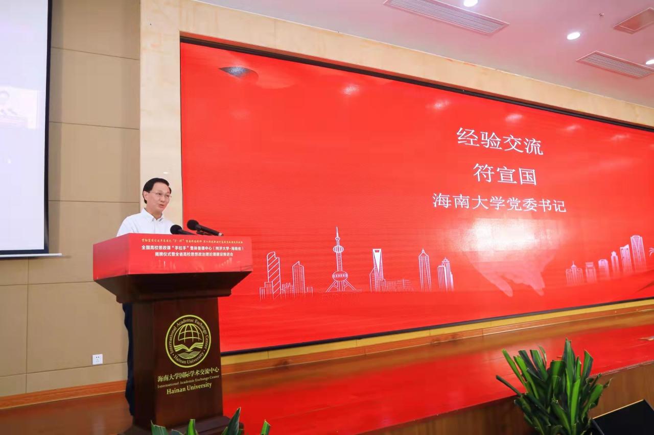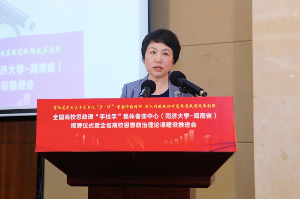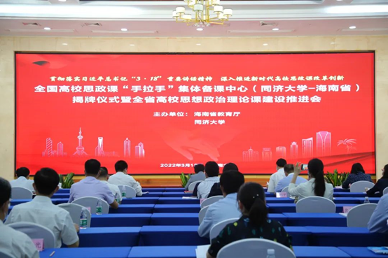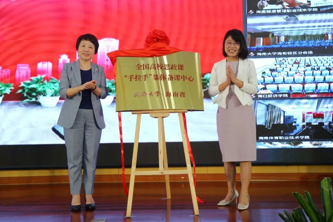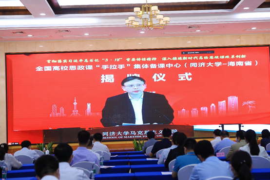 揭牌仪式上,同济大学党委书记方守恩通过视频发表讲话,他指出,同济大学将进一步深化省校合作,聚焦协同育人,充分发挥两地的资源优势,合力打造备课中心,通过开展集体备课、教学示范、交流互动等活动,在学科建设、课程改革、师资培优等方面加强合作,聚焦当前思政课建设热点难点堵点,集中研讨提问题、集中培训提素质、集中备课提质量,推动思政课建设高质量发展,支持海南国际教育创新岛建设。