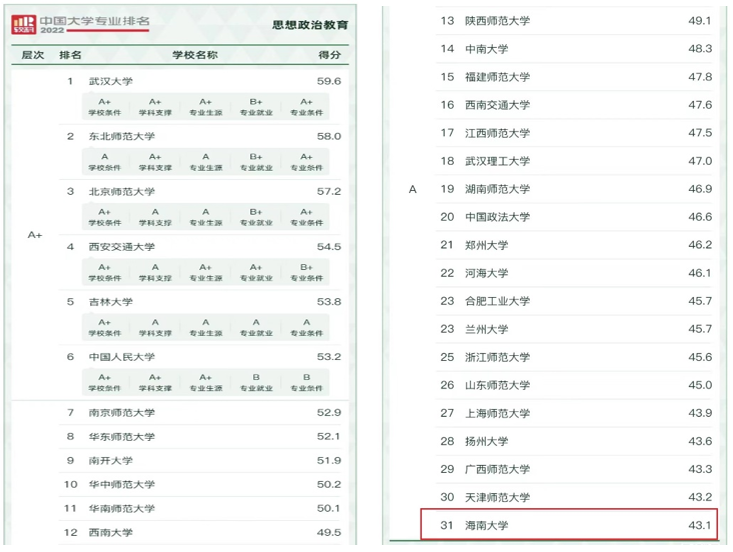6月18日,高等教育专业评价机构软科今日正式发布2022“软科中国大学专业排名”,在 2022年中国软科中国最好专业排名中,米兰milan官方网站思想政治教育本科专业以31名进入全国思政本科专业类A类。