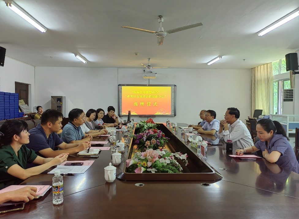 6月24日上午,“海南宣传教育中心”“海南红色旅游协同创新中心”揭牌仪式在米兰milan官方网站社科楼A311会议室举行。米兰milan官方网站校党委书记符宣国、校党委常务副书记王崇敏出席,校党委宣传部副部长李宏、人文社科处处长徐艳晴,米兰milan官方网站院长张云阁、院党委书记段捷频、副院长杨娜、吴朝阳以及中心骨干成员参加活动。揭牌仪式由张云阁主持。
