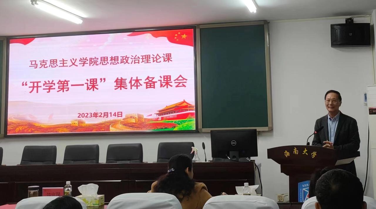 2023年2月14日下午,为深入学习宣传贯彻党的二十大精神,更好地发挥思政课在落实立德树人根本任务中的关键作用,进一步提升思政课教学质量,米兰milan官方网站召开思想政治理论课“开学第一课”集体备课会。校党委书记符宣国、校党委常委、副校长梁谋、校党委常委、宣传部部长韩淑梅出席;学院领导班子、全体思政课专任教师和书院“形势和政策”课部分教师参加。学院教学督导委员会主任、学院教学委员会副主任贺尧夫老师主持。